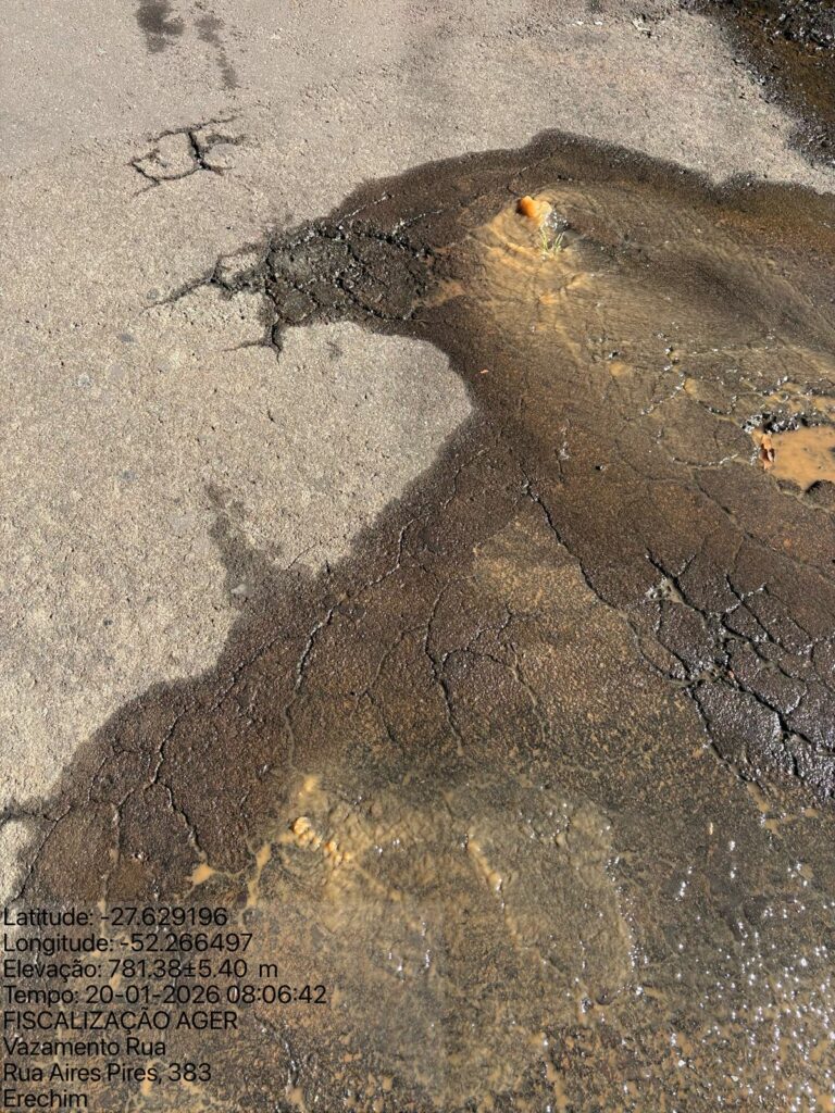A Agência Reguladora dos Serviços Públicos Municipais de Erechim (AGER) está orientando a população sobre a importância de registrar oficialmente os casos de vazamentos de água que vêm sendo observados em diversos pontos da cidade.