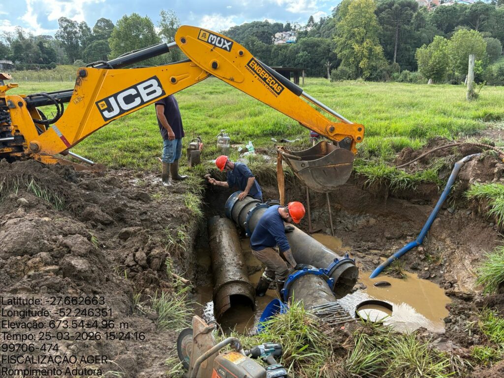 O ponto identificado fica na localidade do Poletto. Diante da situação, a empresa responsável iniciará ainda nesta quarta-feira (25), no período da tarde, o reparo emergencial, com previsão de cerca de seis horas para execução do serviço.